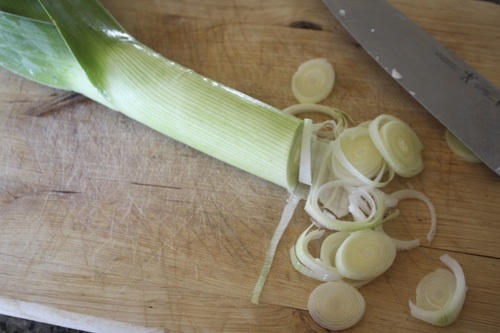 - 1/2 cup leeks, cleaned, sliced thin