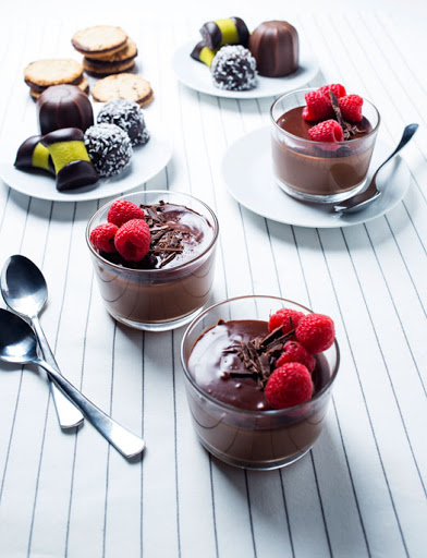 3. Divide the chocolate mixture among four 8-ounce ramekins. Chill the pots de crème in the refrigerator until set, 2 to 3 hours.