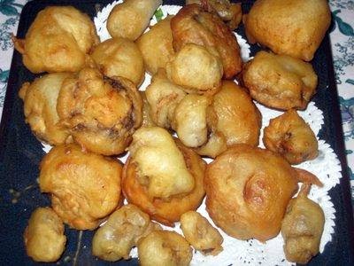 Dip mushrooms in batter and deep fry in 400 degree oil for about 5 minutes or until golden brown. Oil should be deep enough for mushrooms to float freely.