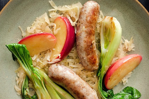 Sausage with Sauerkraut, Apples, and Bok Choy