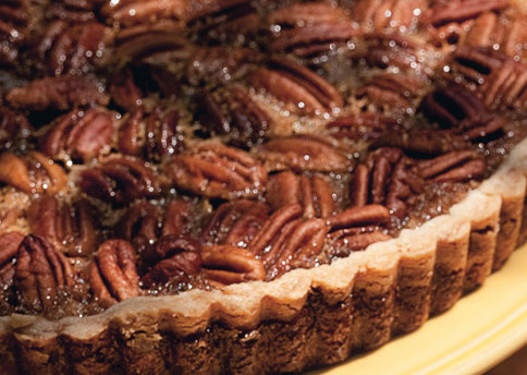 4. Pour pecan filling into hot crust. Bake until center of filling is set, about 25 minutes. Cool tart on rack 1 hour; remove pan sides. Serve slightly warm or at room temperature. DO AHEAD: Can be made 8 hours ahead. Rewarm slightly before serving, if desired.