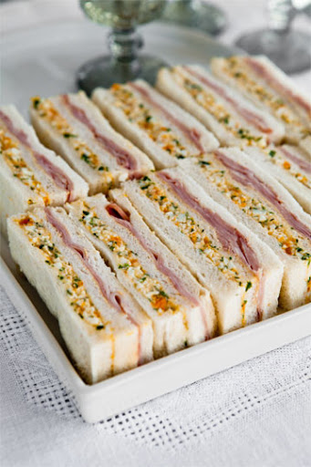 Cut off the crusts with a sharp knife, then cut each sandwich into 3 fingers and place on a plate. Cover with plastic wrap, then with a wet tea towel until ready to serve. Best served at room temperature, but chill after making until a half hour before serving.