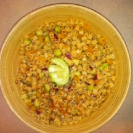 Toss all ingredients in a large bowl. Refrigerate 2 hours before serving. Mix well before serving. You may add additional dressing if desired.