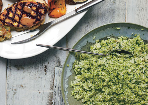 3. Transfer rice to bowl. Remove ginger rounds. Mix in cilantro oil and serve.