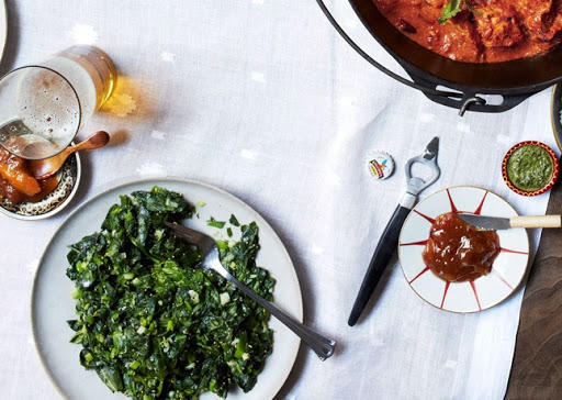 - 4 bunches flat-leaf spinach, stemmed, very coarsely chopped