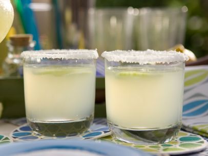 - rub the rims of 2 rock glasses with lime wedges and dip in coarse salt.