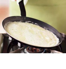 2) In a crepe pan over medium heat, melt 1 tsp. of the butter to coat the pan evenly. Lift the pan at a slight angle and pour 2 Tbs. of the batter into the center, tilting the pan to spread the batter to the edges. Return the pan to the heat and cook until the crepe is golden underneath, 1 to 2 minutes. Using a spatula, flip the crepe over and cook for 1 to 2 minutes. Transfer to a plate and cover. Repeat with the remaining batter. Makes 8 crepes.