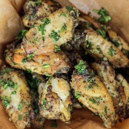 5. When the chicken is cooked through, toss the wings with the garlic/cheese/olive oil mixture.