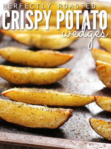 Cut the potatoes lengthwise, the skinny way. Placing half of the potato cut down down on the cutting board, cut it in half, and then each half in half. Repeat with the other portion of potato. Each potato should yield 8 wedges.