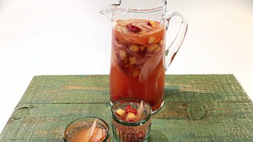 Combine the wine, nectar, brandy, apple, peach, raspberries and blackberries in a pitcher. Cover and refrigerate for at least an hour and up to 8 hours to chill and let flavors meld.
