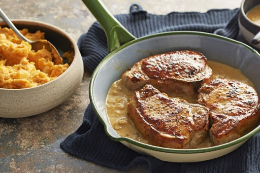 - Salt and pepper the gravy before serving with pork chops and mashed vegetables.