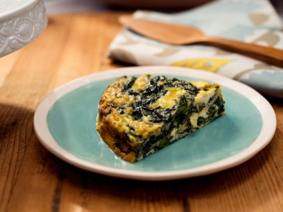 Invert the frittata onto a plate and then flip, right-side up, onto a serving plate, or remove the sides of the springform pan and transfer to a serving plate.