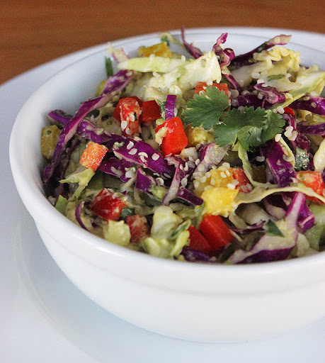 - 3 cups cabbage (mix of purple and green), finely shredded