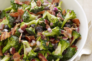 COMBINE broccoli, onions, raisins and sunflower kernels in large bowl. Add dressing mixture; toss to coat.