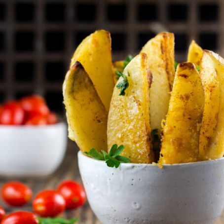 - 4 large baking potatoes, peeled, washed, cut into wedges