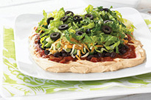 REFRIGERATE 1 hour. Serve with chips. kraft kitchens tipsSpecial ExtraGarnish with chopped fresh cilantro.Makeover - How We Did ItWe've taken a favourite appetizer and made it over by preparing it with black beans instead of guacamole and using Philadelphia Light Brick Cream Cheese Spread, Kraft Double Cheddar Shredded Cheese Light - Made with 2% Milk and baked tortilla chips in place of regular products. prep time 10 min total time 1 hr 10 min