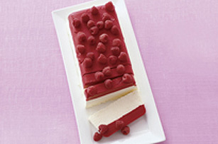 FREEZE 3 hours or until firm. Unmould dessert onto plate about 15 min. before serving; top with berries. Let stand until dessert is slightly softened before slicing to serve. kraft kitchens tipsHow to Soften SorbetTo soften sorbet, spoon measured amount of sorbet into microwaveable bowl. Microwave on MEDIUM 10 to 15 sec. or until slightly softened.prep time 15 min total time 3 hr 30 min