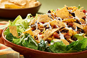 DRIZZLE with dressing; sprinkle with chips. kraft kitchens tipsSubstituteSubstitute any canned beans for the black beans.