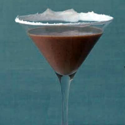 2)Dip the rims of 2 martini glasses into a bowl of whipped cream. Strain the cocktail into the glasses.