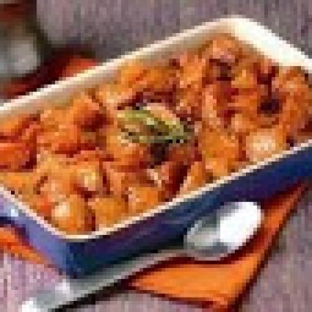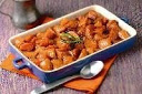 After the butter and sugar have melted, put the potatoes in a buttered baking dish, pour the butter-sugar mixture on top, cover, and bake in a preheated 350°F (180°C) oven for 45 minutes to 1 hour.