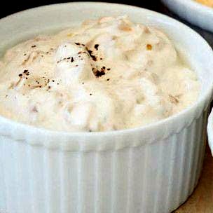 Laced with caramelized onions, this fresh-tasting dip will disappear quickly at parties and on picnics. A touch of cayenne adds a spicy kick.