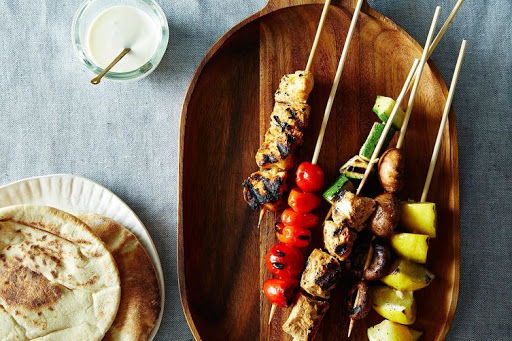 1. The night before you want to cook: Mix the first 9 ingredients, from the yogurt to the pimentón, in a large bowl. Cut the chicken into medium-sized chunks, toss in the marinade, cover with plastic wrap, and refrigerate until ready to grill.