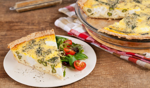This easy Asparagus and Goat Cheese Quiche is perfect for a Sunday brunch or light dinner. Serve with mixed greens and cherry tomatoes dressed with a little olive oil and salt and pepper.