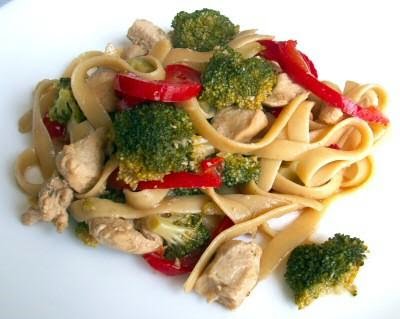 This is a yummy chicken veggie stir fry! It's easy to make, and has a great flavor. I love pasta and chicken, and this is a great recipe! I know the photo shows broccoli instead of snow peas... because I haven't made it with snow peas yet. :) It was delicious with broccoli, though! :) My rating: 10/10.