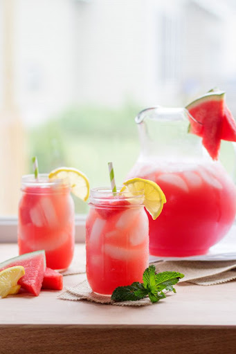 Add cubed watermelon to blender and blend on high until well pureed. Pour through a fine mesh strainer lined with cheesecloth into a gallon jug.