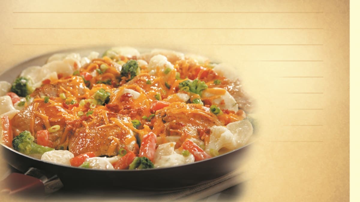 Meanwhile, combine cheese, bacon and green onion. Sprinkle over chicken mixture. Let stand 5 minutes before serving.