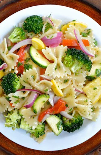 Combine the cooked pasta, chopped vegetables, and vinaigrette. Stir until everything is well mixed and coated with vinaigrette. Serve immediately or refrigerate until ready to eat.