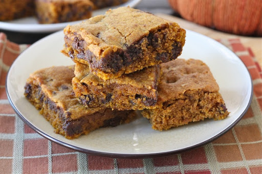2. With a stand or electric mixer, cream butter and sugar on medium-high speed until smooth; beat in egg and vanilla until combined. Add pumpkin puree and mix well. The mixture will look somewhat curdled. Reduce speed to low, and mix in dry ingredients until just combined. Fold in chocolate chips.