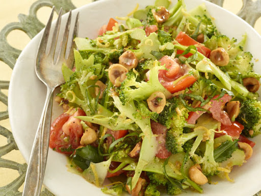 Stir in the tomatoes, hazelnuts and basil. Cover and allow to sit, at room temperature or in the refrigerator, for another 15 minutes before serving.