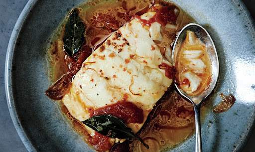 Poached Cod with Tomato and Saffron