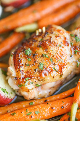 Place into oven and roast until the chicken is completely cooked through, reaching an internal temperature of 165 degrees F, about 25-30 minutes.* Then broil for 2-3 minutes, or until caramelized and slightly charred.