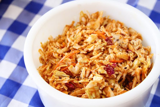 In a small bowl whisk together the bar-b-que sauce, mustard and vinegar. In a large bowl, combine the sauce with the cole slaw mix and stir to mix. Serve immediately.