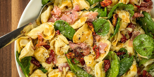 To bowl, add prosciutto, spinach, sun-dried tomatoes, and dressing and toss until well combined.