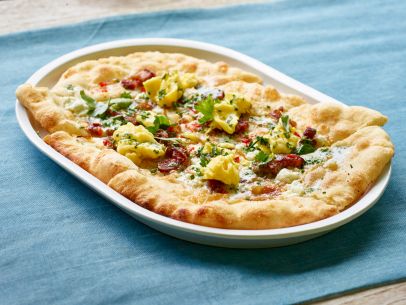 Tarte Flambe with Softly Scrambled Eggs and Goat Cheese