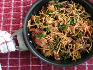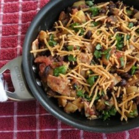 Skillet Black Beans with Potatoes and Tortillas