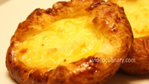 Step17 Cut the dough into 24 squares. Use a pastry bag fitted with a plain tip and pipe the pastry cream in the center of each square. Fold the corners of the dough together and seal.
