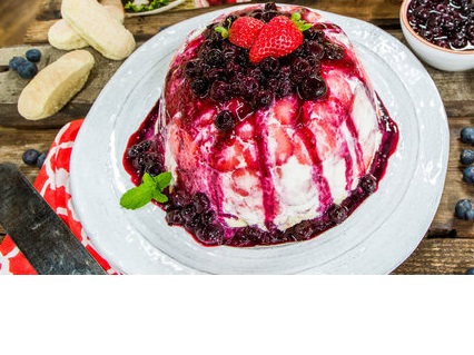 3. Place strawberry jam in a small bowl and heat in the microwave on high for 30 seconds to warm. Split ladyfingers and spread strawberry jam between them. Sandwich back together and press them onto the top of the bowl (breaking some apart, if necessary, to cover most of the surface). Cover the bowl with plastic wrap, press down once more on the ladyfingers (a pot lid works well) and place in freezer for at least 6 hours or until firm.