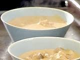 Take the pot off the heat and carefully pour in the brandy. Ignite the brandy with a long kitchen match and let burn until the flame subsides. Return the pot to the heat, sprinkle in the flour, give it a stir, and cook for another 2 minutes. Now add water to cover and deglaze, scraping up all the browned bits on the bottom of the pot with a wooden spoon. Add the cream and bring to a boil. Immediately turn the heat down to low and gently simmer until the soup is reduced and thickened, 30 to 45 minutes. Strain into a clean pot and season with salt and pepper.
