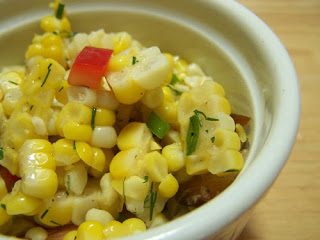 1. Heat the margarine in a medium skillet over medium-high heat. Add the corn, stirring to coat with the margarine. Cook, stirring occasionally, 10 to 12 minutes, or until golden brown. Remove from the heat and transfer the corn to a medium bowl. Add the bell pepper, celery, cucumber, scallions, and jalapeno, if using. Toss to combine.