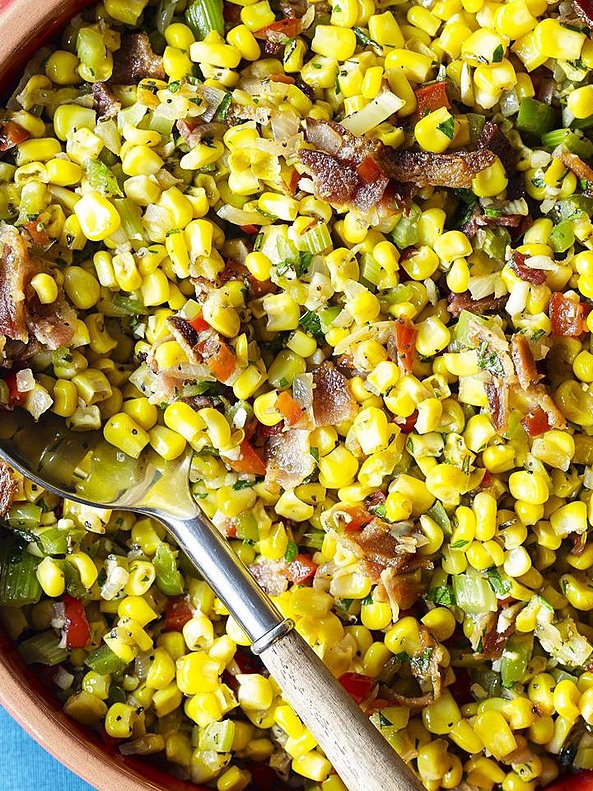 Cover the saucepan and reduce heat to low; simmer until broth is nearly evaporated and vegetables are tender, about 20 more minutes. Stir in crumbled bacon. Dish can be simmered longer or held over low heat if desired.