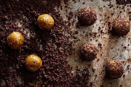 Scoop date mixture by the level tablespoon, roll into balls in between palms, then roll in reserved chopped espresso beans, pressing slightly to adhere. Transfer to a rimmed baking sheet or plate and chill at least 1 hour.