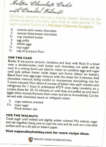 MOLTEN CHOCOLATE CAKE WITH CANDIED WALNUTS