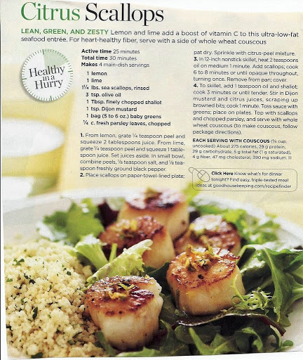 LEMON-ZEST 1/4 TSP PEEL AND JUICE 2 TABLESPOONS LIME-ZEST 1/4 TEAS AND 1 TBL JUICE COMBINE ZEST,1/8 TEAS SALT & PEPPER,PAT DRY SCALLOPS, PRINKLE WITH PEEL MIXTURE, HEAT 2 TEAS OLI IN SKILLET COOK 6-8 MINUTES UNTIL OPAQUE,REMOVE FROM PAN AND COVER ADD 1 TEASP OLI AND SHALLOTS COOK 3 MINUTES STIR IN DIJON AND CITRU JUICES SCRAPING UP BITS COOK 1 MINUTE TOSS SAUCE WITH GREENS AND PUT SCALLOPS ON TOPSERVE WITH COUSCOUS