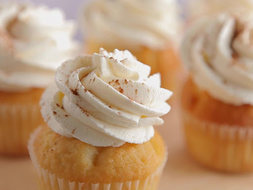 When the cupcakes are done baking, pull from the oven and let cool. Peel the liner from each one then and place in a roasting pan, or any container with a lip. Pour about half the milk mixture over the cupcakes and place in the refrigerator.Just before serving, pour the rest of the milk mixture over the cupcakes and dollop with some of the orange whipped cream.