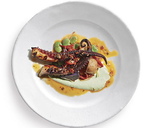 Divide the grilled octopus among the plates. Drizzle the remaining vinaigrette over the octopus, and serve.