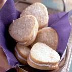 Meanwhile, combine all filling ingredients except half & half in small bowl. Beat at low speed, adding enough half & half for desired spreading consistency. For each sandwich cookie, spread 3/4 teaspoon filling on bottom of cookie. Top with second cookie, sugar-side up. Squeeze together gently.